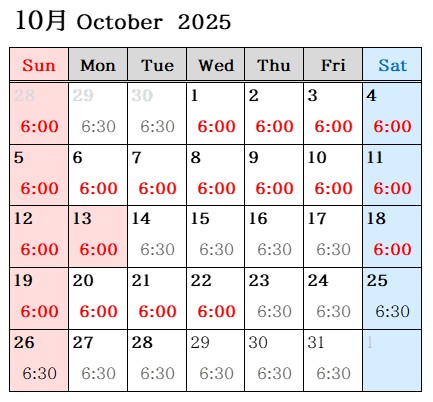 レストラン「J」の朝食営業時間はカレンダーのとおりでございます。