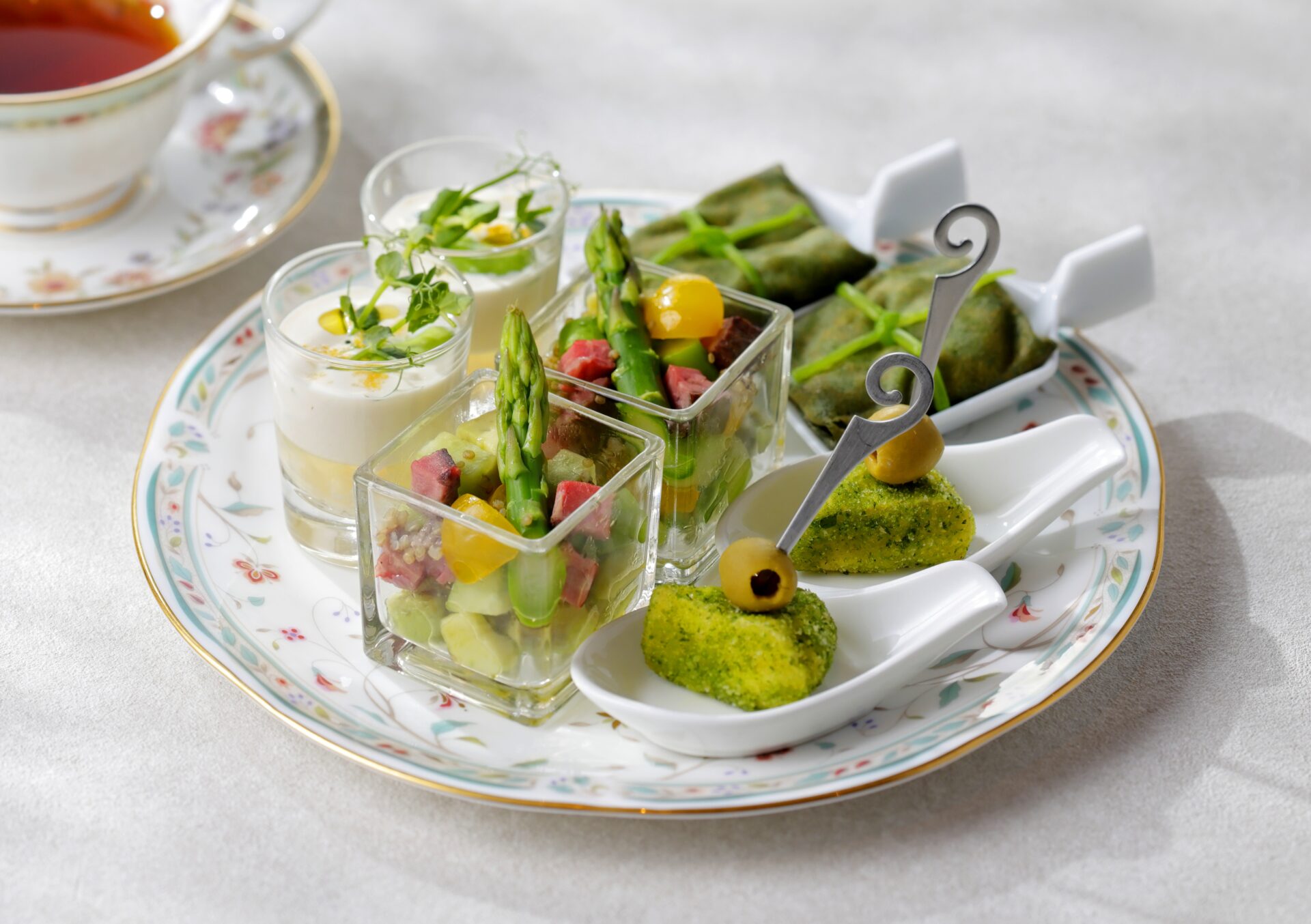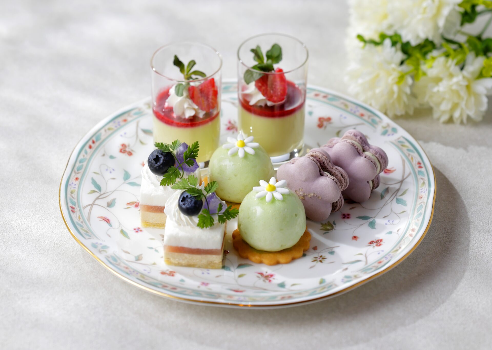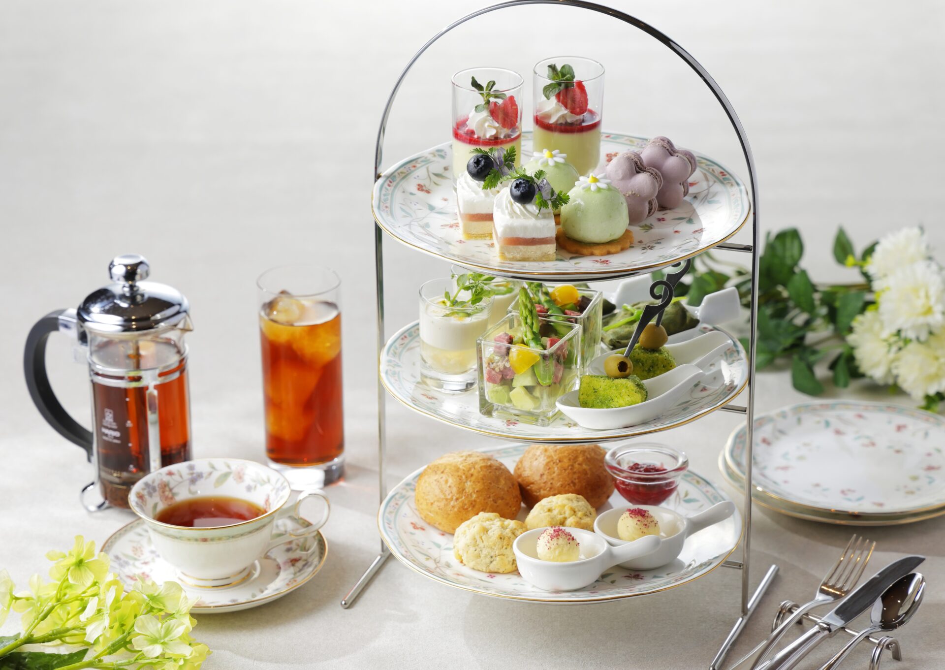 初夏の庭をイメージした爽やかなアフタヌーンティーセット。