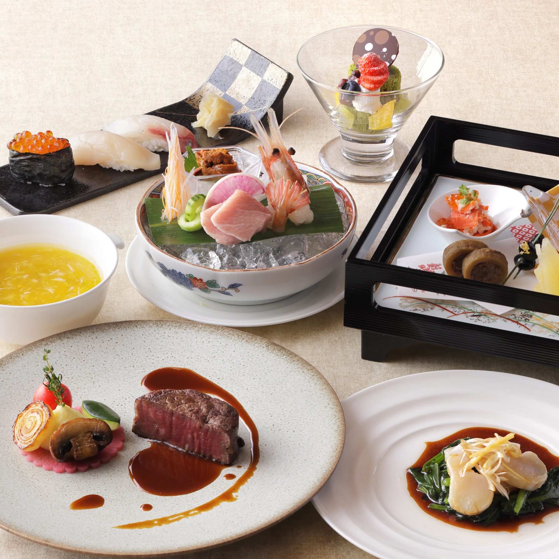 贅沢な食材を盛り込んだ和洋中コース料理と、