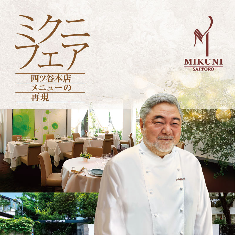 惜しまれつつ閉店した「オテル・ドゥ・ミクニ」のメニューをアレンジした特別コースをお楽しみいただけるミクニフェアを開催いたします。