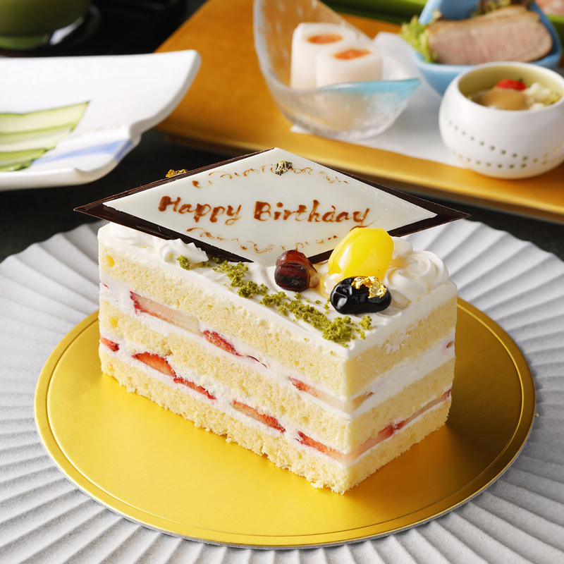 会席に和風スクエアケーキをご用意して、和食らしいお祝いを演出いたします。